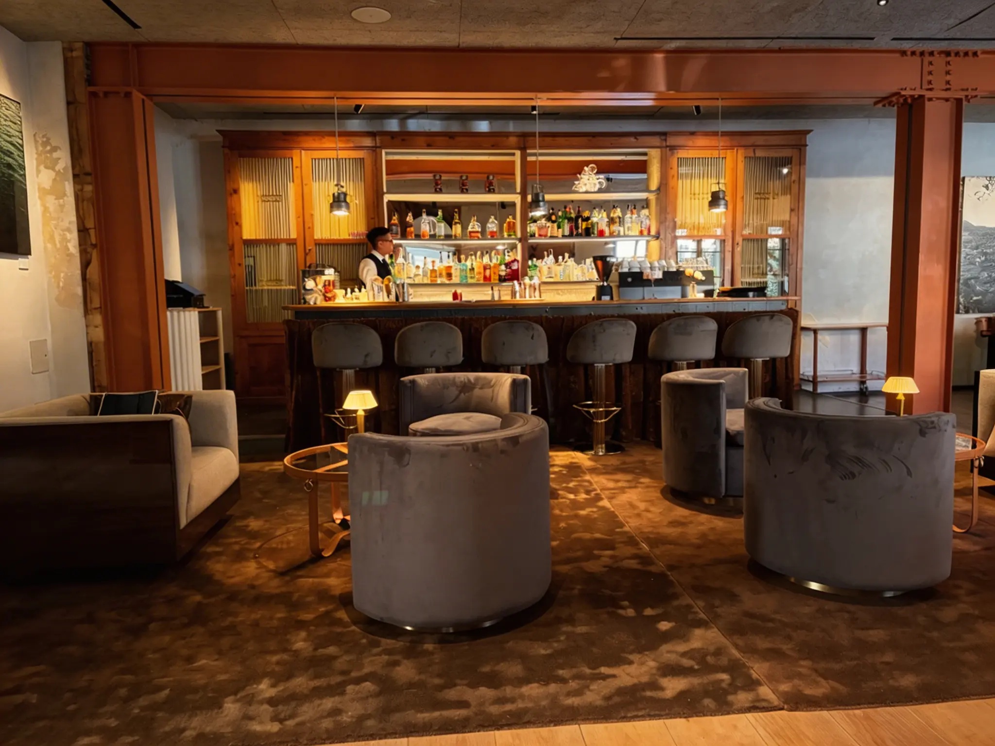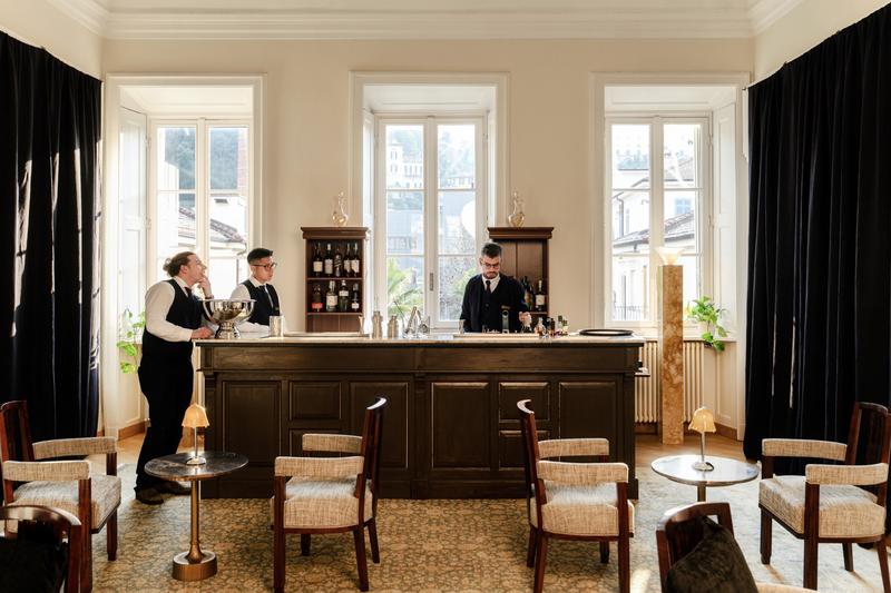 Settle into cream sofas around the mahogany bar for morning coffee, afternoon aperitivo, or late-night drinks.