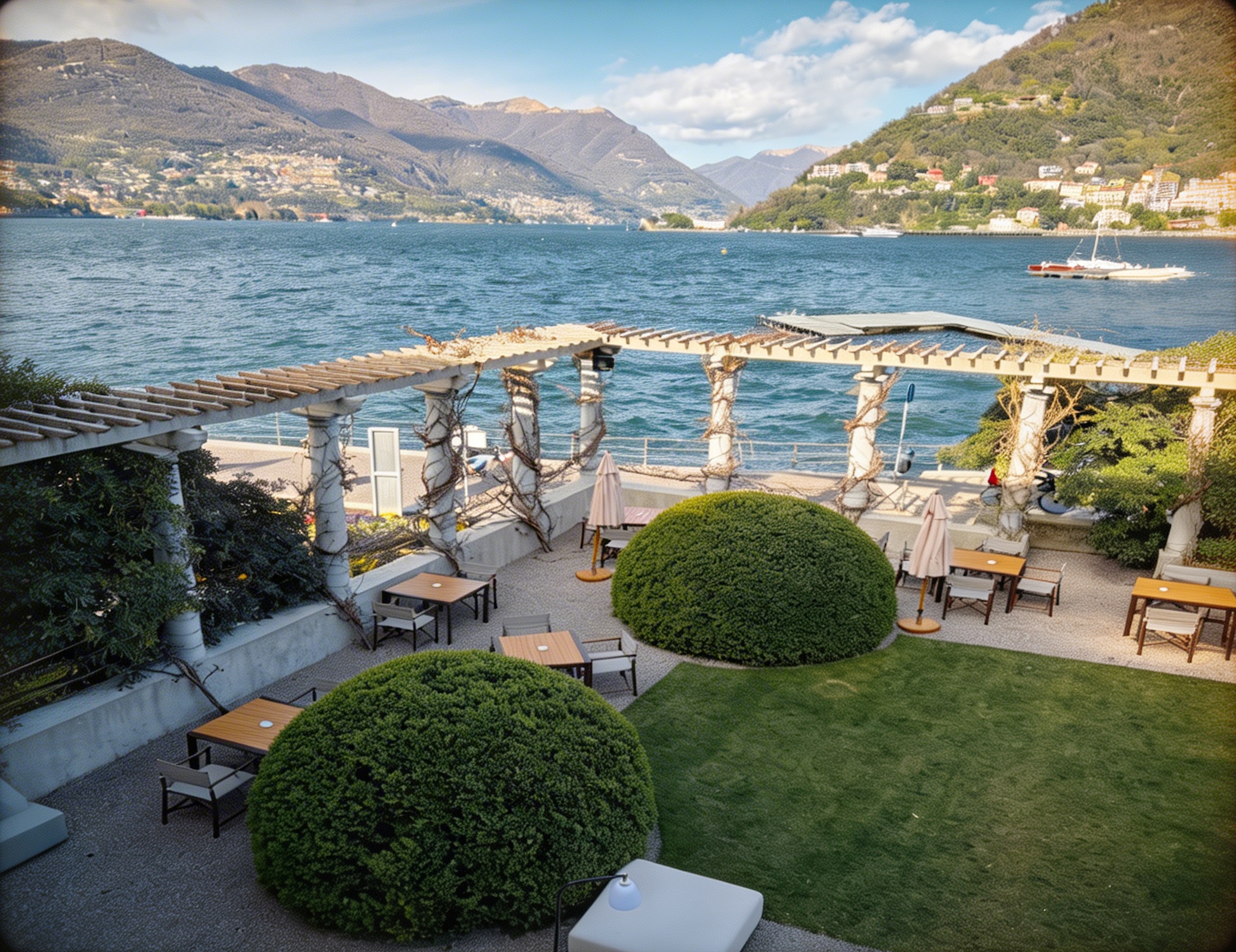 The lakefront terrace is the place to be during sunny days